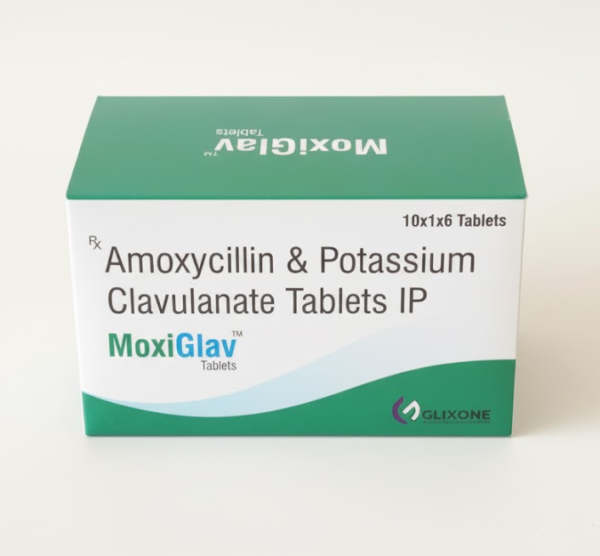 Broad-spectrum antibiotic that fights bacterial infections effectively. MOXIGLAV combines Amoxicillin and Clavulanate for respiratory, skin, and urinary tract infections.